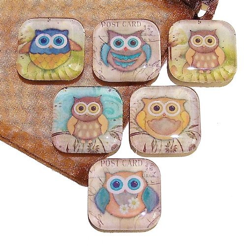 The Black Cat Jewellery, This very cute set of 6 owl fridge magnets is handmade from 1 x 1" glass tiles. The back is coated with a glaze to make them more durable. They are presented in an organza gift bag.